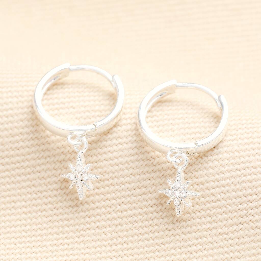 Tiny Star Charm Huggie Hoop Earrings In Silver Plating