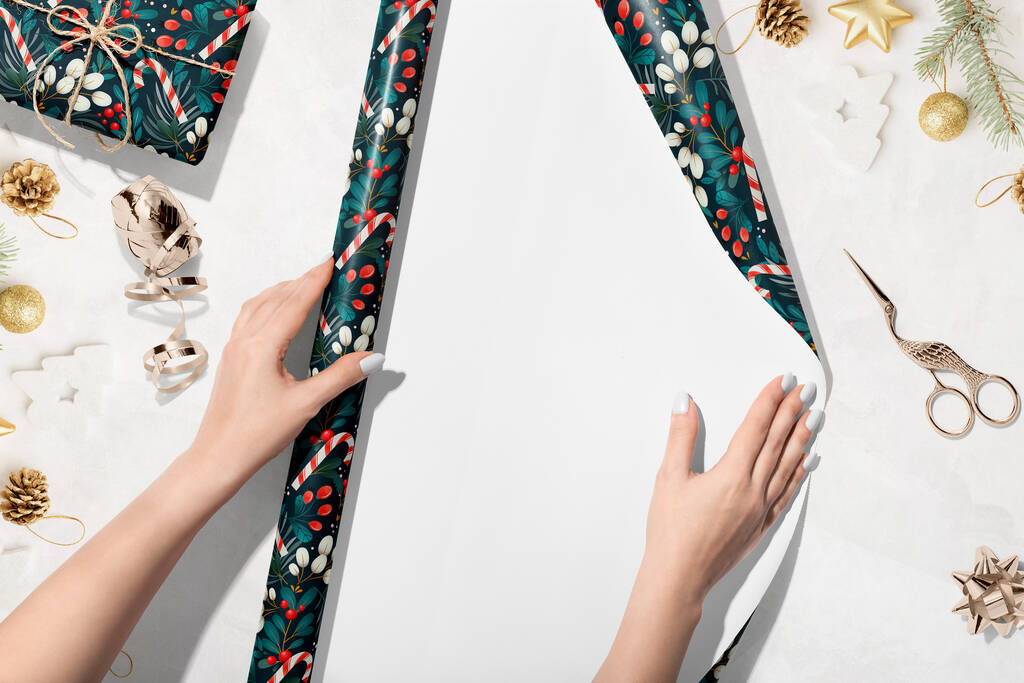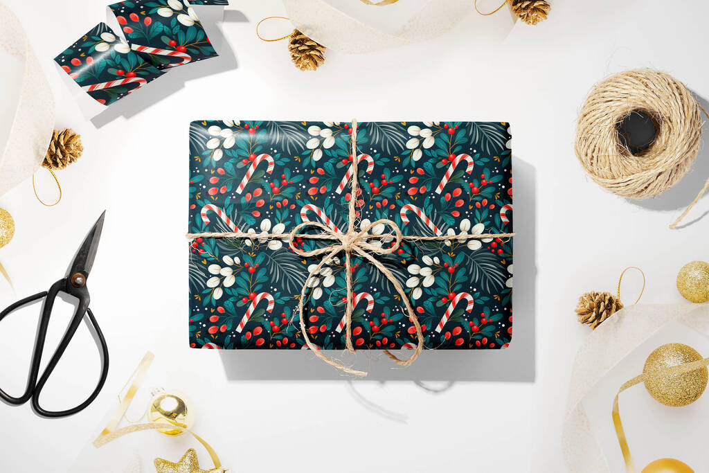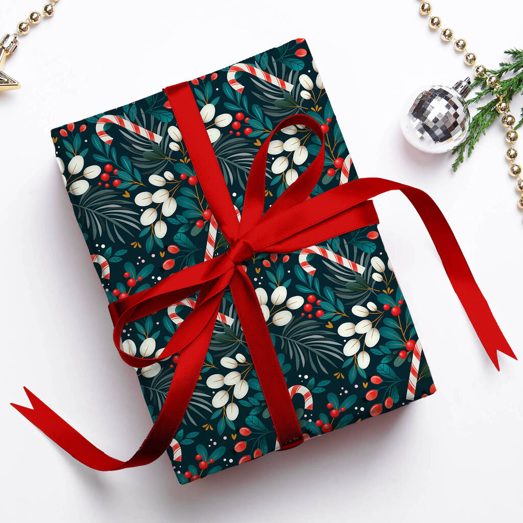 Premium Christmas Wrapping Paper Botanical Candy Cane