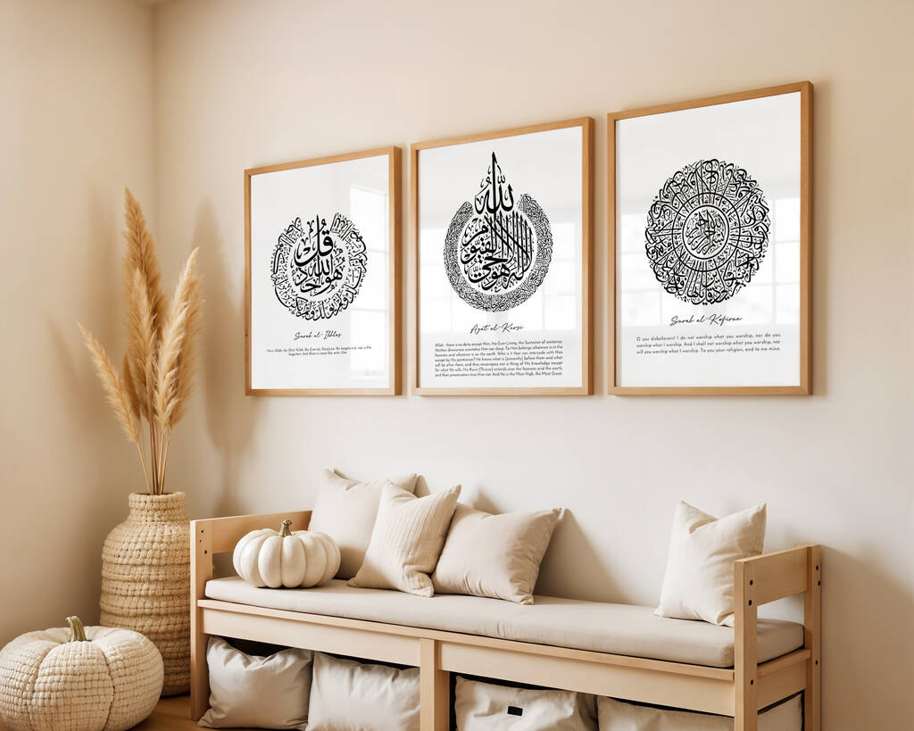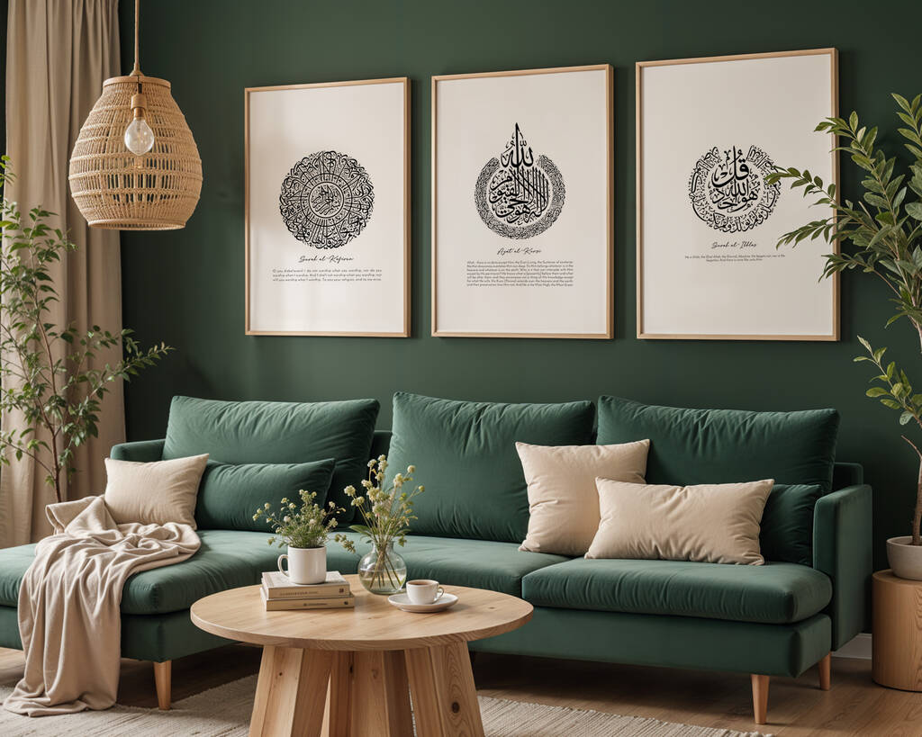 Set Of Three Arabic Calligraphy Quran Verses Posters Islamic Wall Art