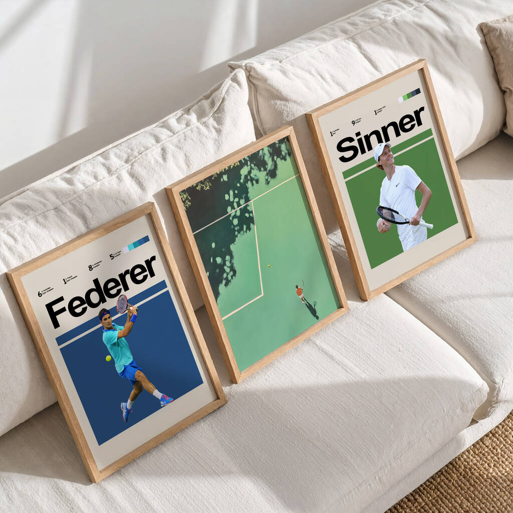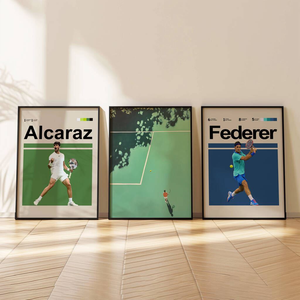 Set Of Three Tennis Posters – Two Players + Court