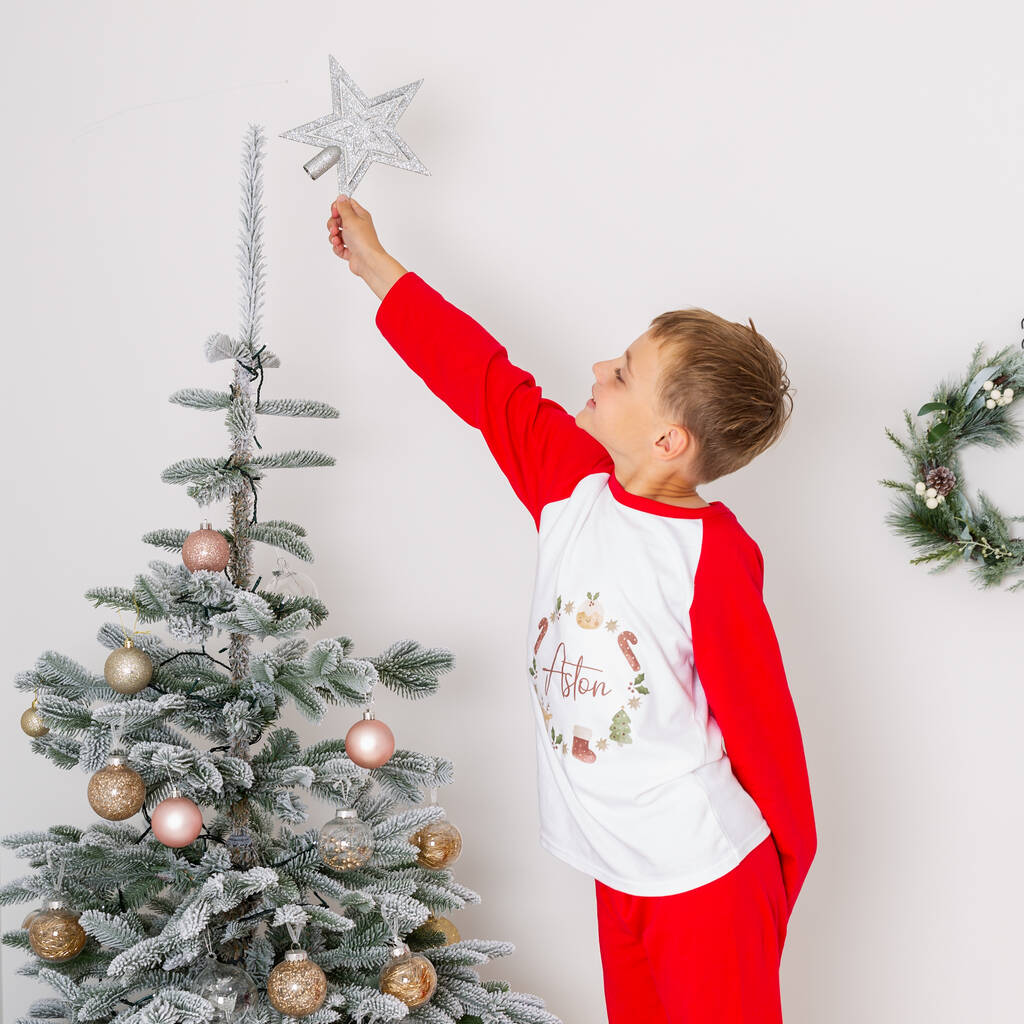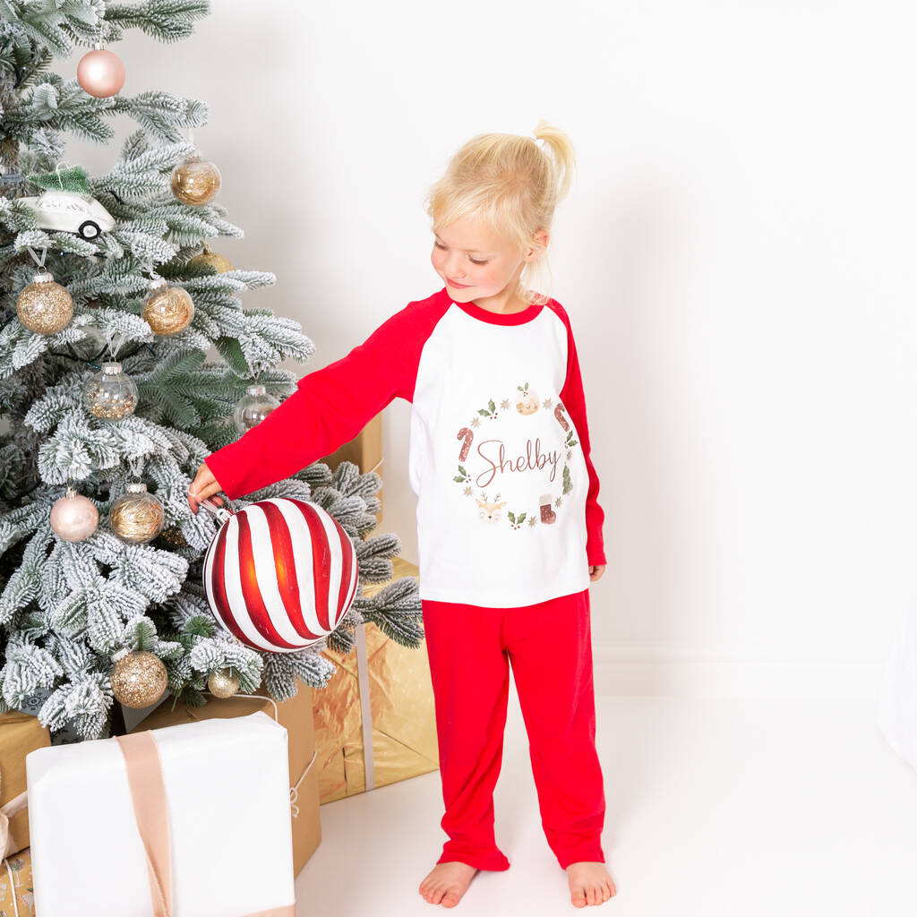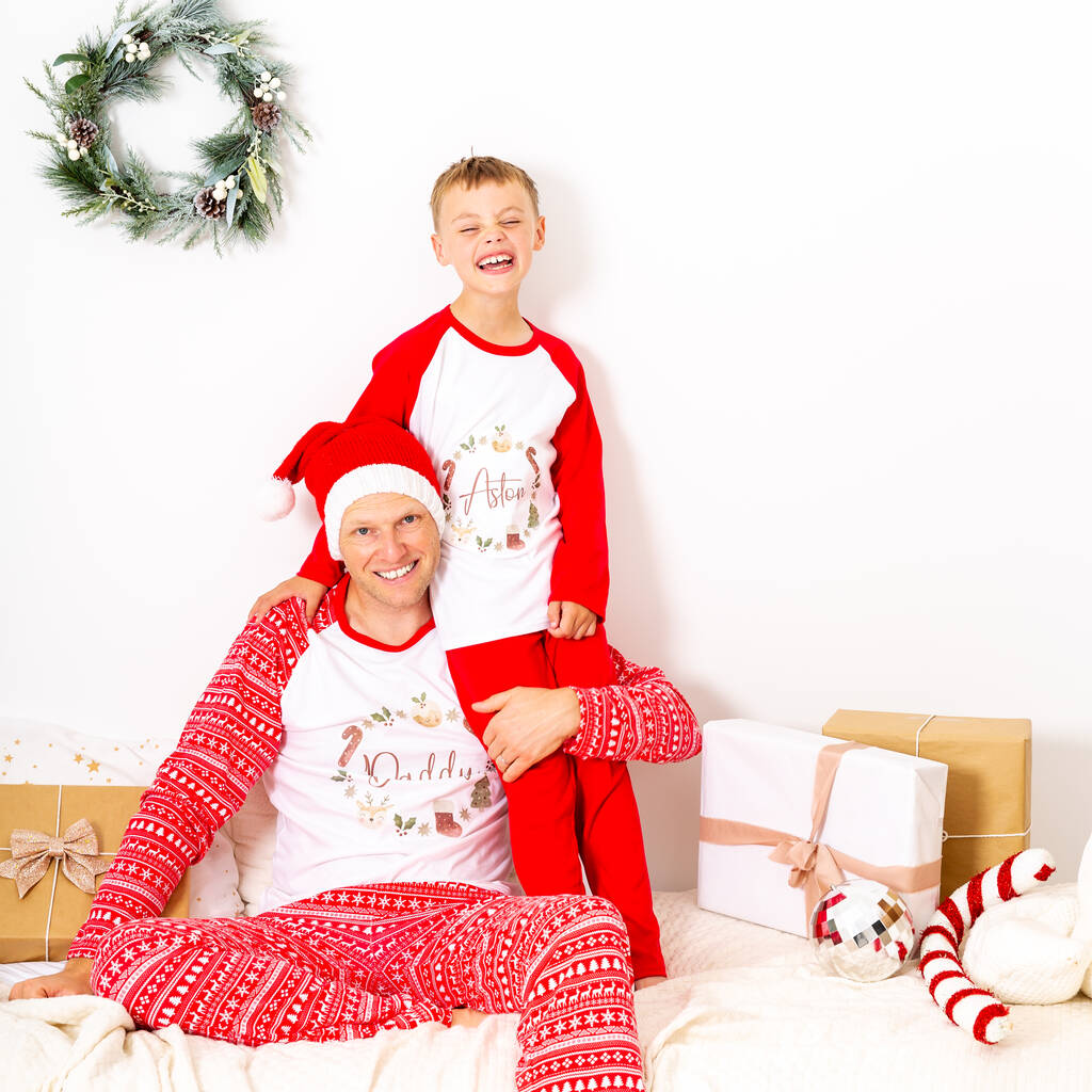 Personalised Christmas Family Matching Pyjamas Nordic Wreath