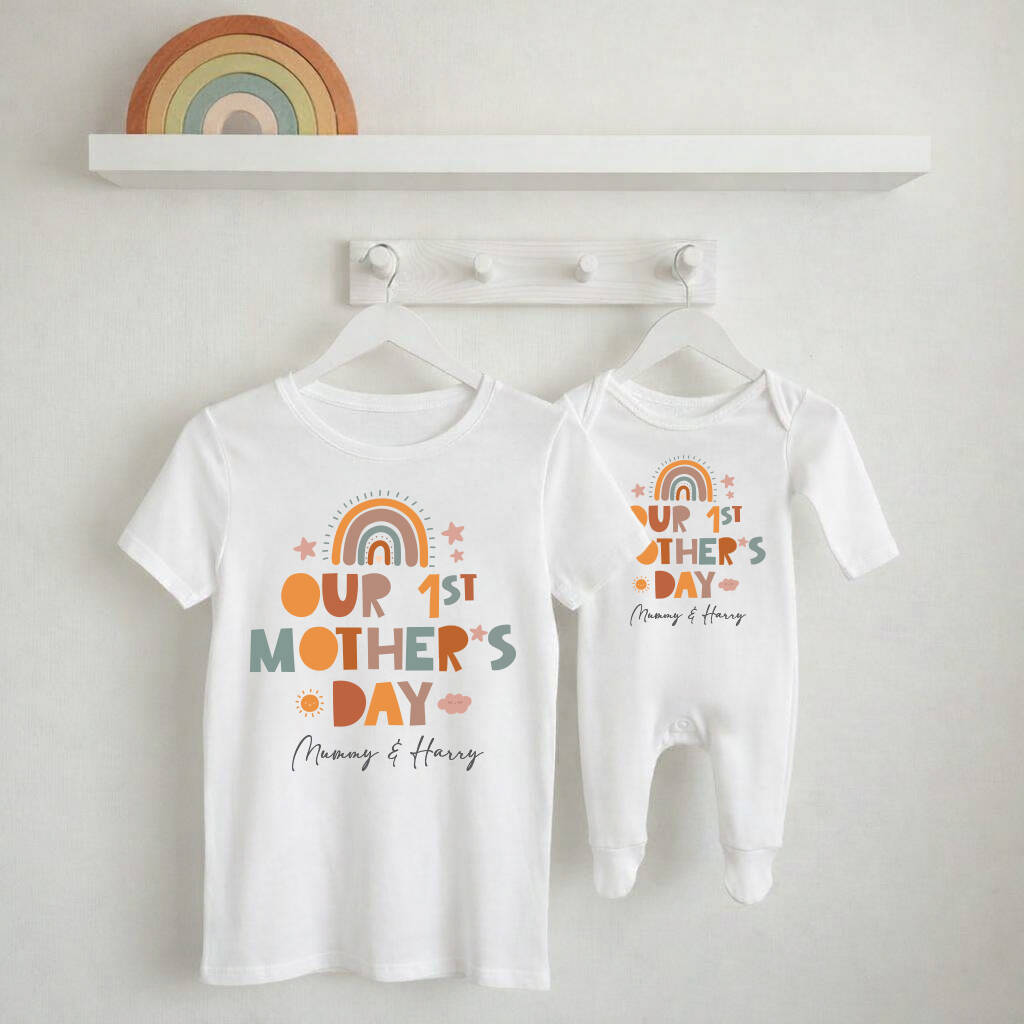 Personalised First Mother's Day Mummy And Me Matching T Shirt And Babygrow Set Boho