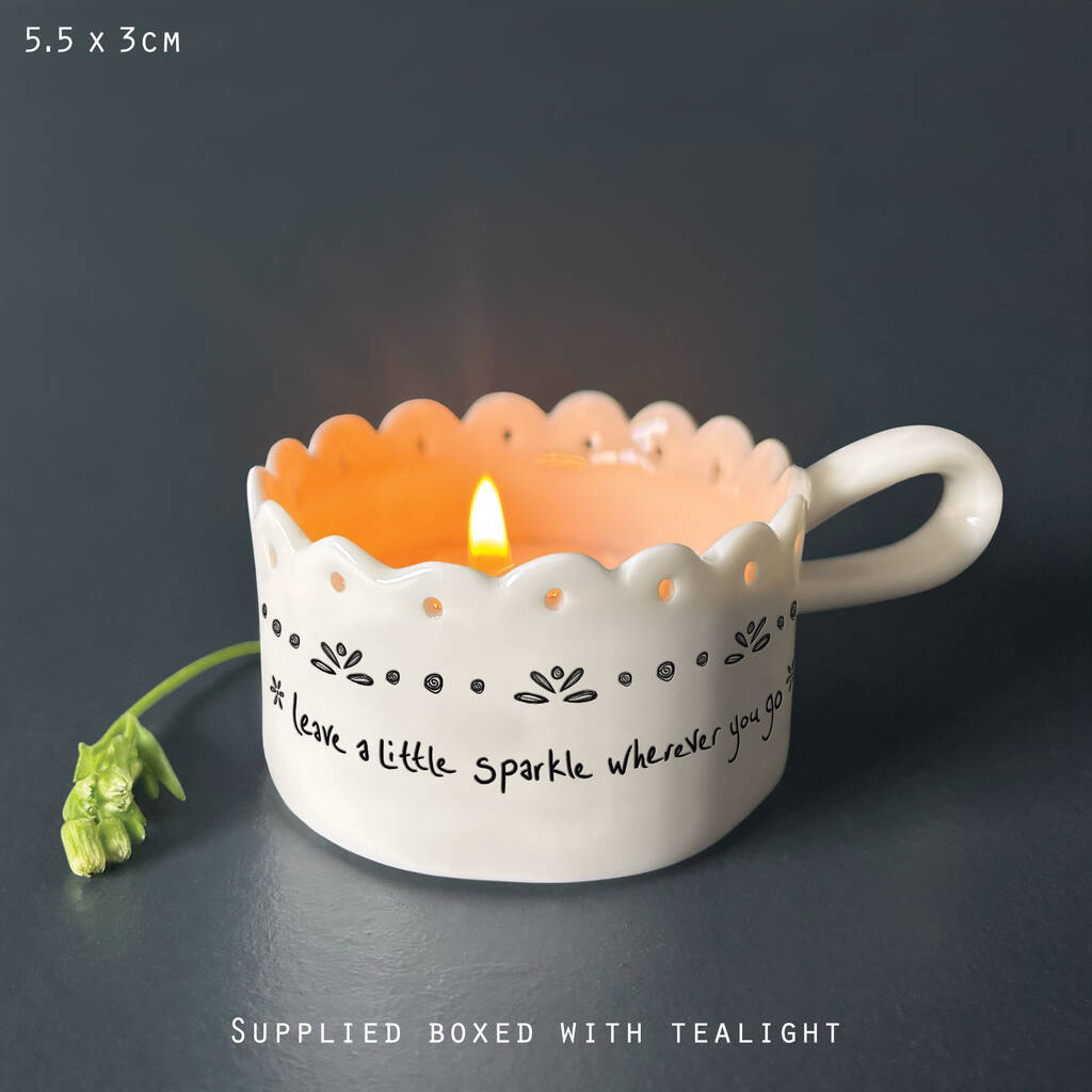East Of India Handled Scallop Tea Light Holder Let Your Light Shine