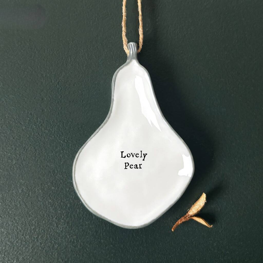 This porcelain hanging pear from East of India features the simple message “Lovely pear” – a sweet little sentiment designed to make someone smile.