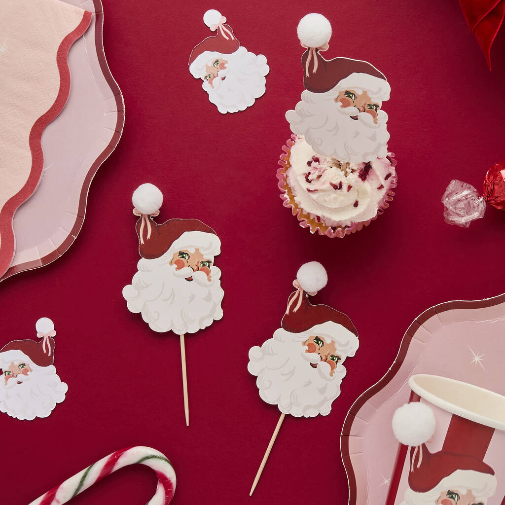 Vintage Santa Pom Pom Food Picks Pack Of 12
