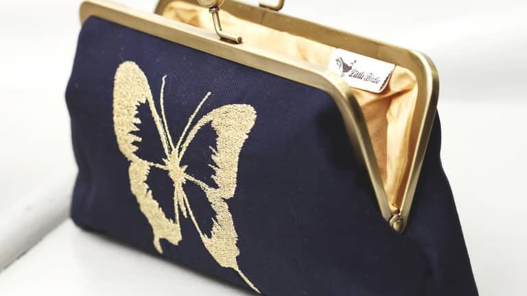 Bored of the hum drum high street, Charlotte began to design and make her own accessories several years ago. Friends soon began to make requests, word spread and Little Birdie was born. The collection comprises pretty clutch bags and purses, each one using luxury, quality fabrics, all embellished or embroidered by Charlotte, and lined in bold silks. These are complemented by a range of elegant, yet simple fine silver jewellery.
