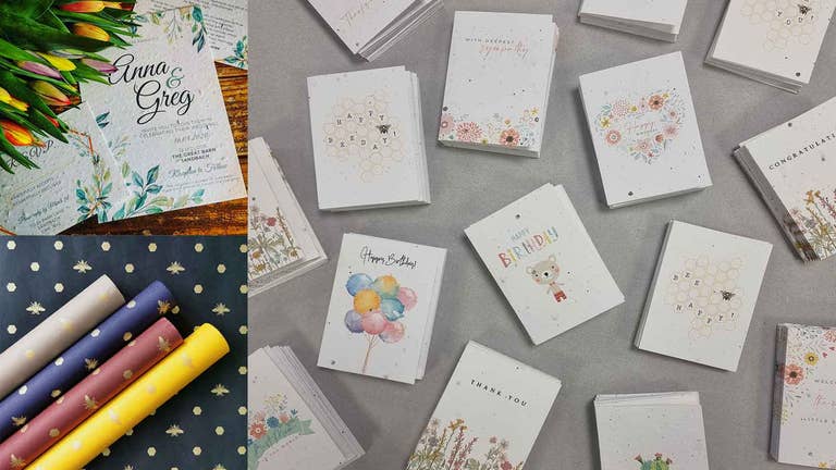 From greeting cards to a whole set of wedding stationery, we print beautiful things onto earth-friendly papers. At Little Green Paper Shop we set out on a mission to change the world, one piece of paper at a time. Regardless of the product range, they all have two things in common: Sustainability and Beauty. Whilst we focus heavily on seed-infused stock we also sell beautiful papers made from innovative materials such as elephant poo, mulberry bush wrapping papers, and cotton waste papers.