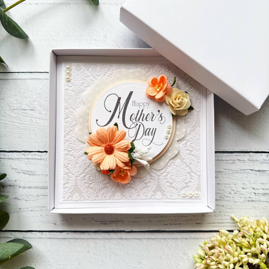 Extra Special Floral Mother’s Day Card. Boxed. Shades Of Orange
