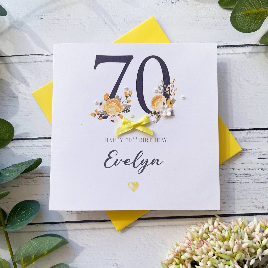 Handmade 70th Birthday Card In Bright Yellow