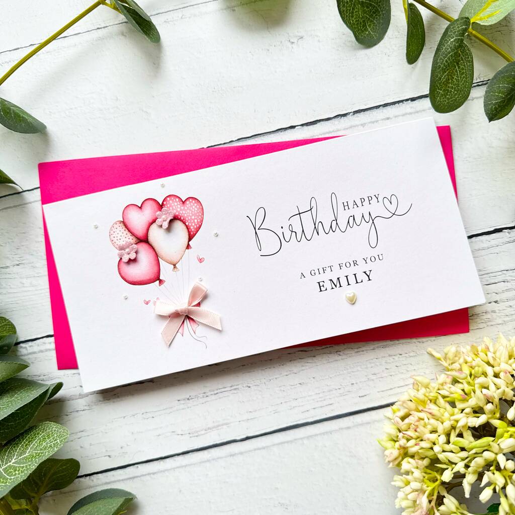 A stylish way to give gift of cash in a personalised envelope. Personalised with the recipients name and a short message on the internal pocket. The perfect way to give cash towards something they really want for their birthday. An ideal present for a special girl or woman in your life. Hand-finished with a bow, paper flowers and tiny pearls.