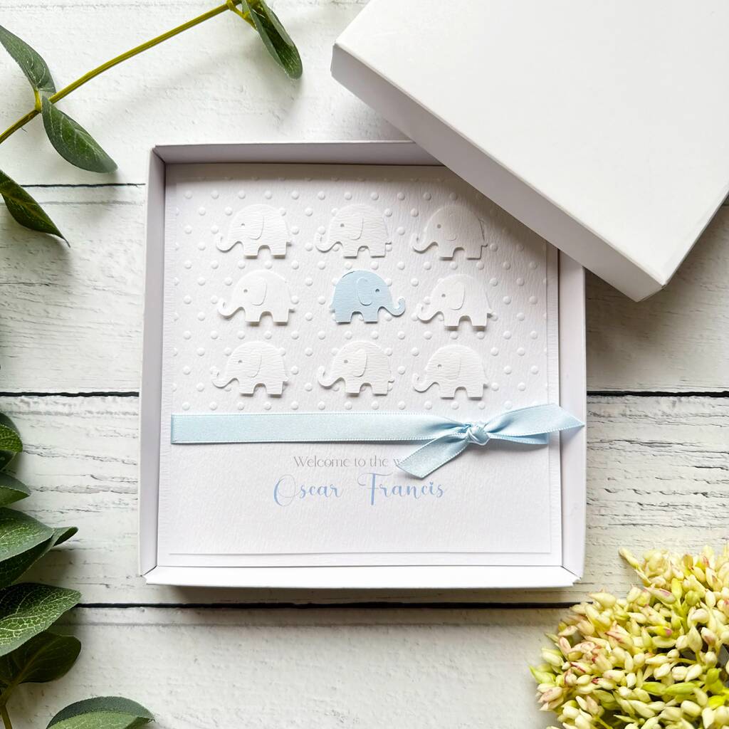 Handmade New Baby Card. Elephant Theme. New Baby Boy