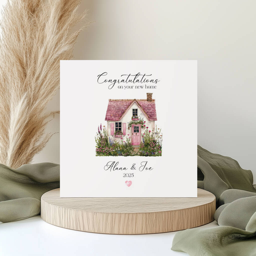 Personalised New Home Card Pink House Design
