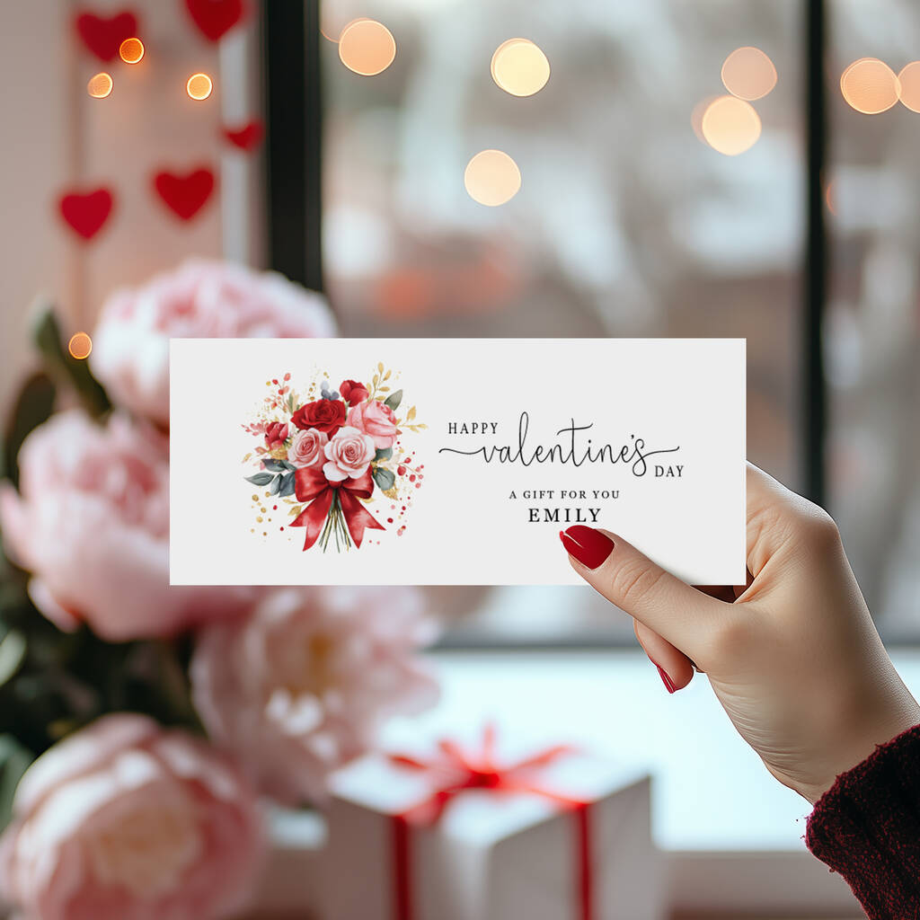 Personalised money wallet for Valentine's Day. A more personal way to give money as a gift. Customised with the recipients name and a short message on the internal pocket. Simply add the name for the front and message for inside to the personalisation section. The message for the inside must be short and fit within the space provided.