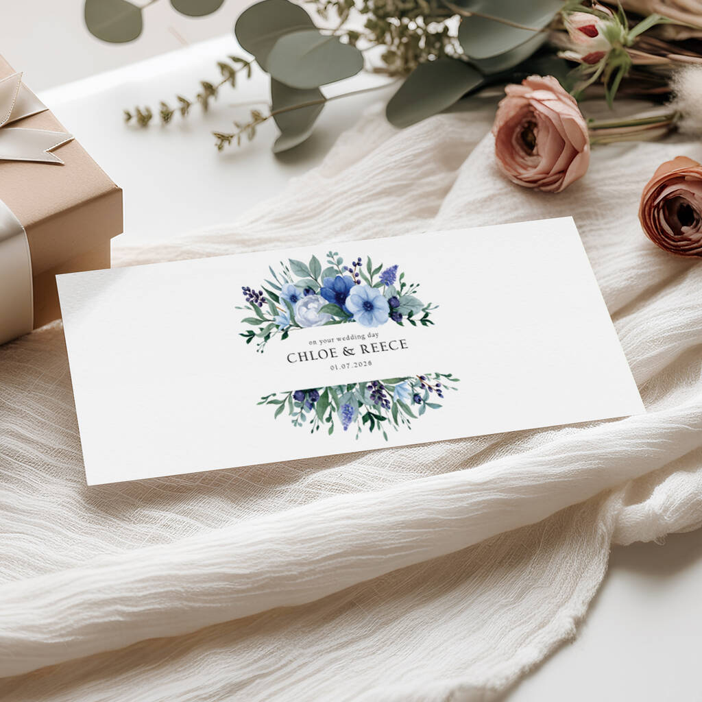 Personalised Wedding Money Wallet: Blue Floral Design