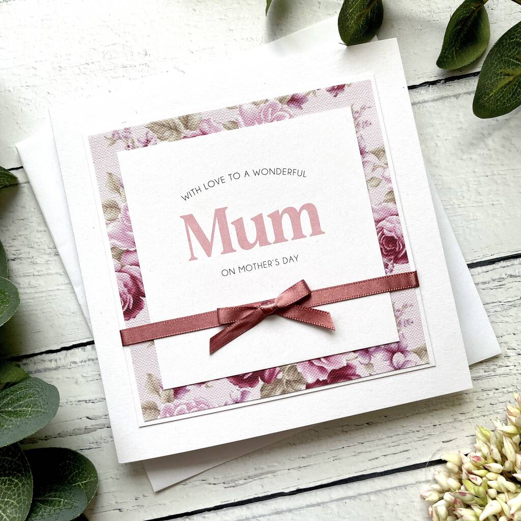 Simple Handmade Mother’s Day Card With Bow And Floral Paper