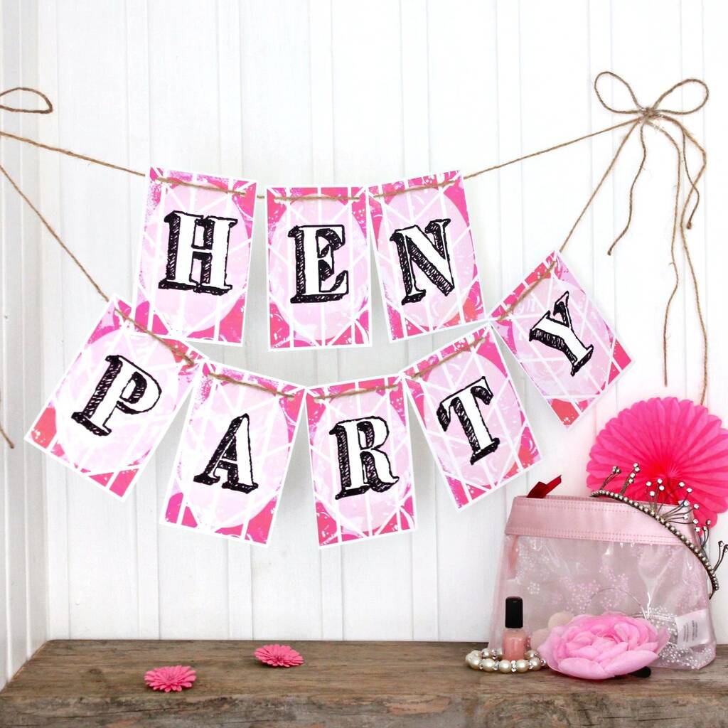 Celebrate the Bride-To-Be on her Hen Night and decorate the room for the Hen Do with this bright, cheerful Hen Party bunting!