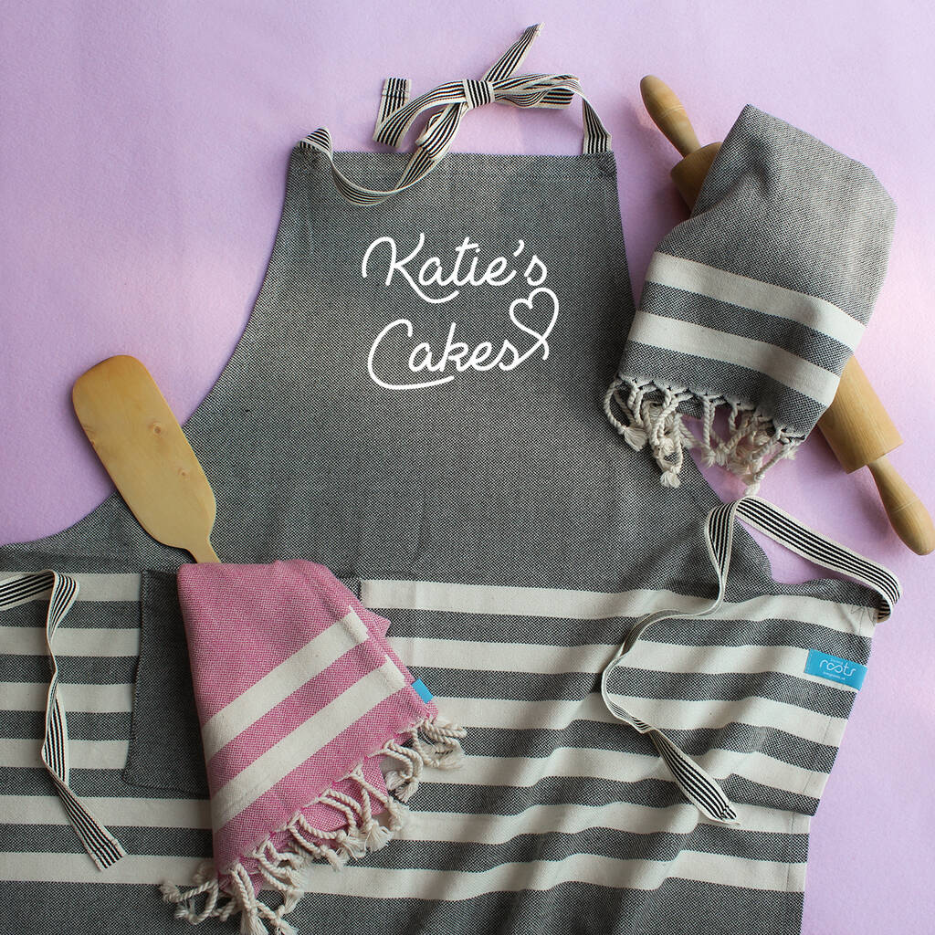 Personalised Cotton Kitchen Apron And Kitchen Towels