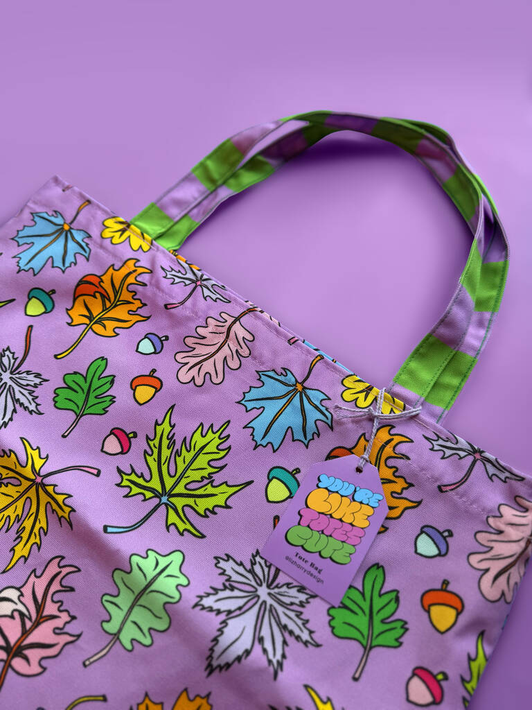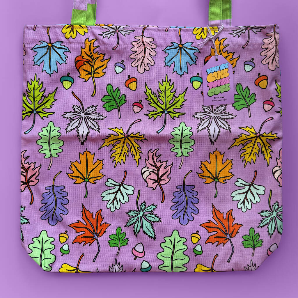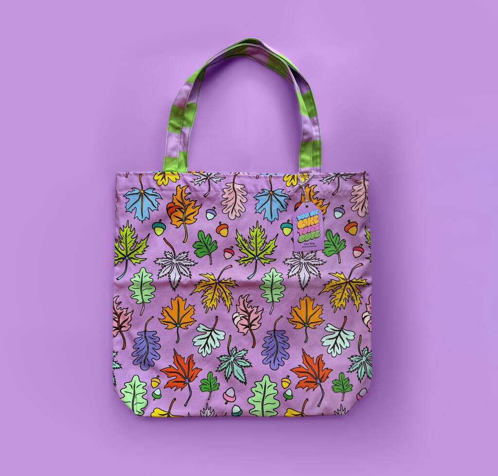Rainbow Autumn Leaves Cotton Reversible Waterproof Canvas Tote Bag