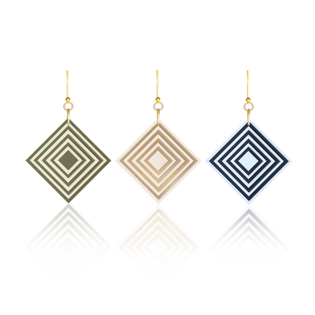 Geometric Diamond Shaped Earrings • Gold Plated Sterling Silver Hooks • Available In Three Colours