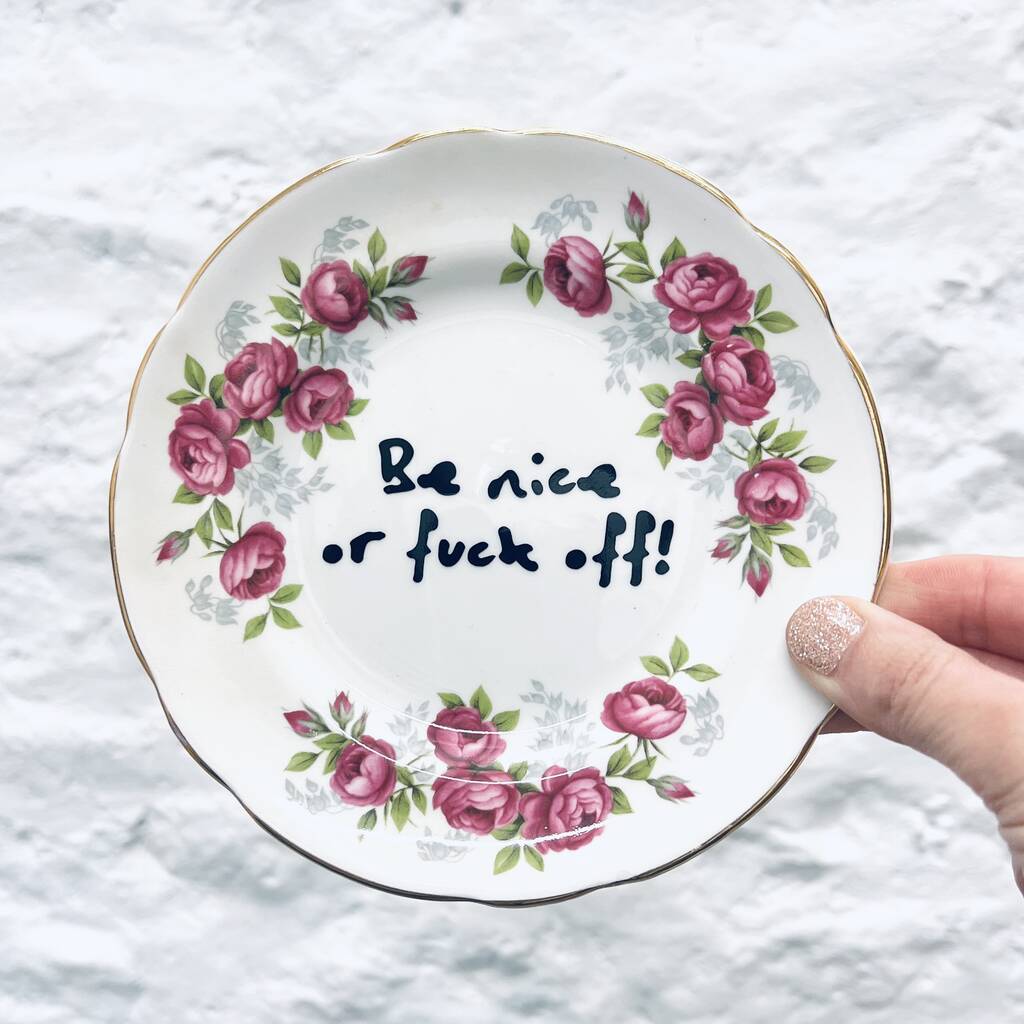 Be Nice Or Fuck Off Upcycled Vintage Plate