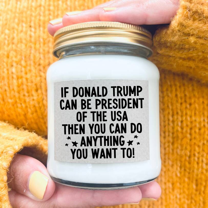 Send encouragement and make someone laugh with our funny Donald Trump meme candle gift