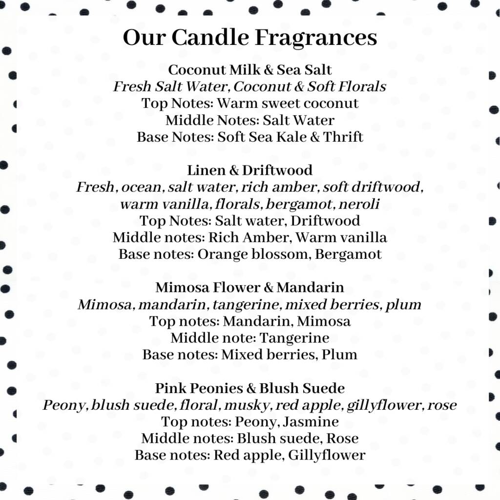Choose from the following fragrance options for your personalised candle: