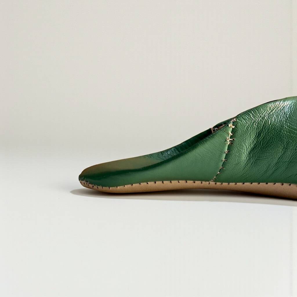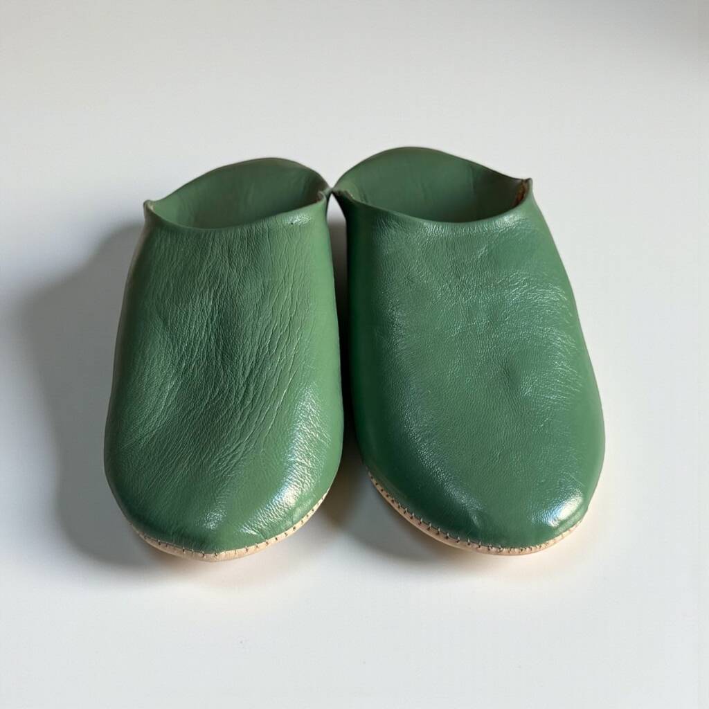 Handmade Moroccan Matcha Green Leather Babouche Slippers