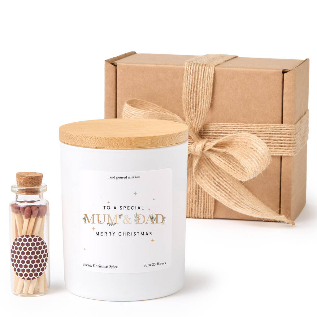 Mum and Dad Christmas Candle Gift – Festive Candle Gift Box with Matches – Thoughtful Xmas Present from Son or Daughter