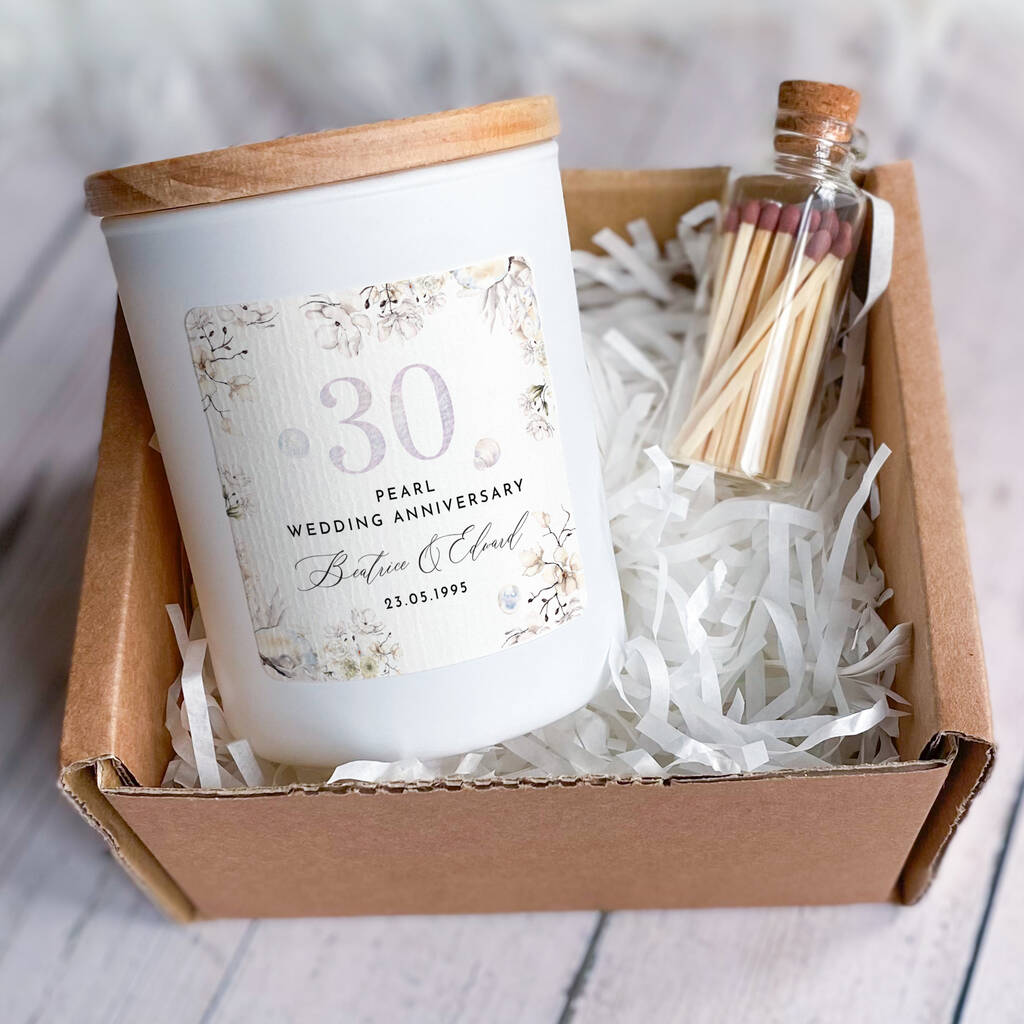 Celebrate 30 years of love and togetherness with this pearl-themed anniversary candle – a thoughtful keepsake personalised with the couple’s names and date. With soft floral details and elegant pearl tones, it’s a beautiful way to honour this meaningful milestone.Whether gifted by children, friends or between partners, this candle is a heartfelt tribute to a love that’s stood the test of time.