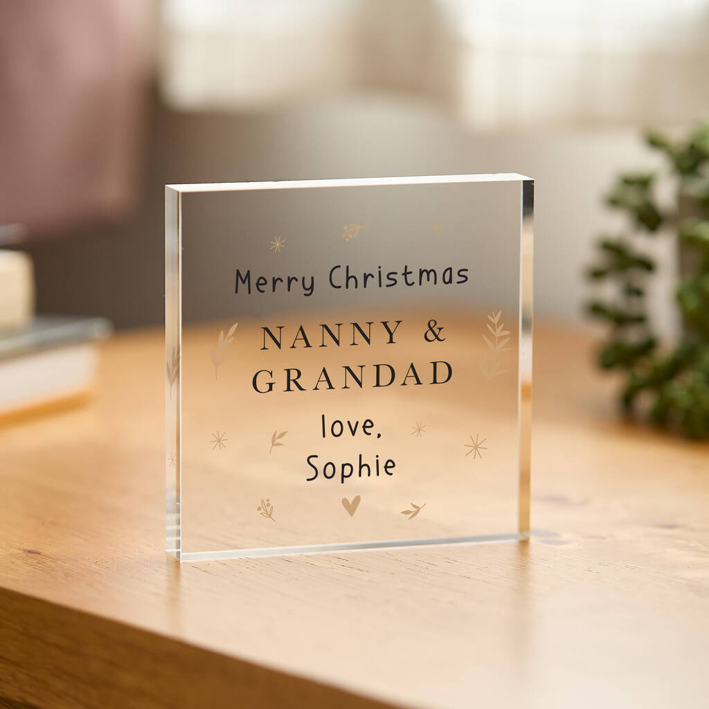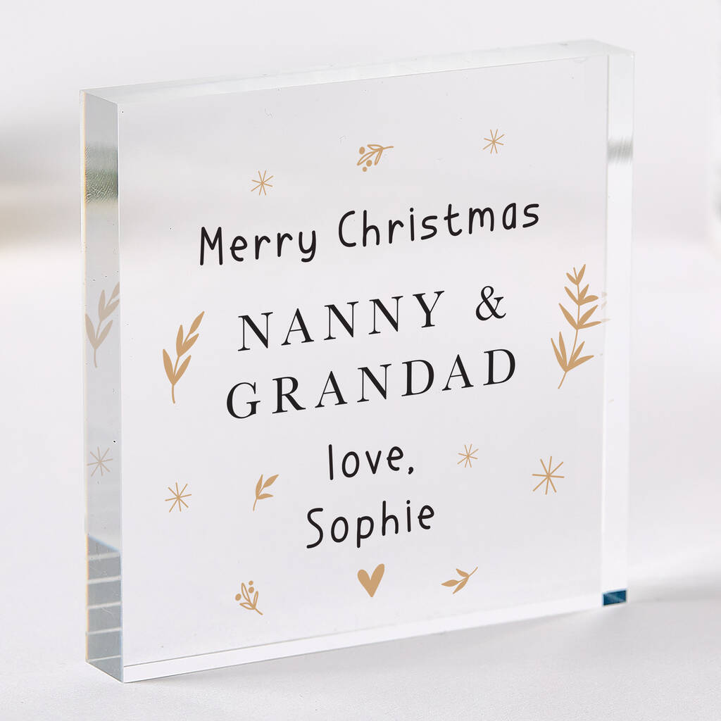 Personalised Merry Christmas Acrylic Plaque Gift For Grandparents