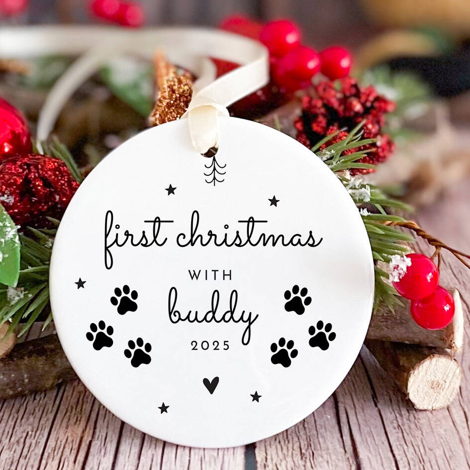Personalised Pet First Christmas Ceramic Ornament Gift, 1 of 7