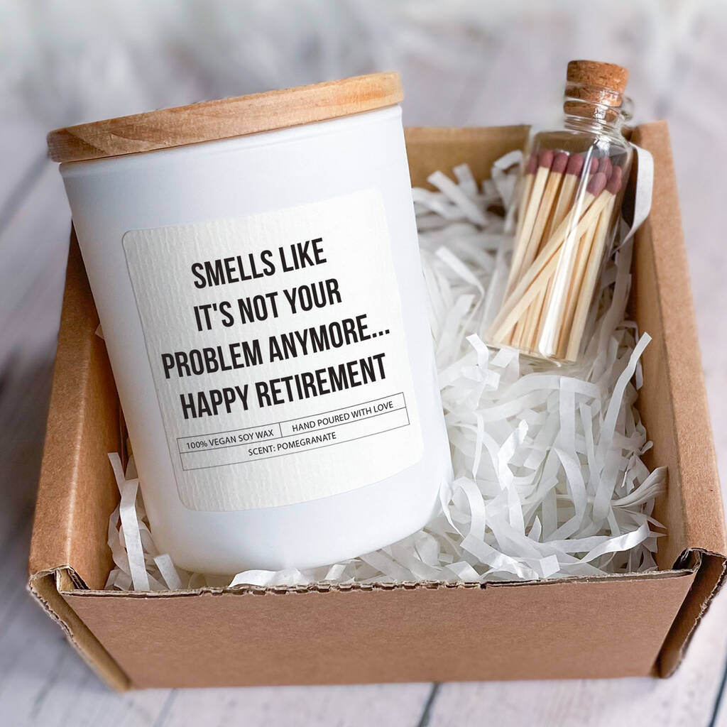 Looking for the perfect retirement gift that encapsulates the essence of a well-deserved break from the daily grind? Look no further than our delightful Scented Candle, exuding an aroma that whispers, "It's not your problem anymore... Happy Retirement!" This witty and thoughtful gift box is tailored to bring a smile to the face of your beloved retiree, whether they be a him or her.