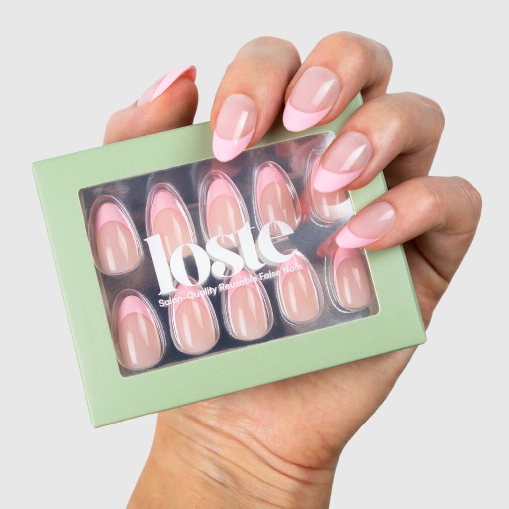 Our ultra-feminine pink French falsies are a staple that suits everyone. This light pink, peony-inspired shade is perfect for summer. Featuring an elegant almond shape and glossy finish, these nails also boast 5-layer gel technology for long-lasting wear. Say goodbye to chips, splits, and fading, and hello to a classic style that complements any look.