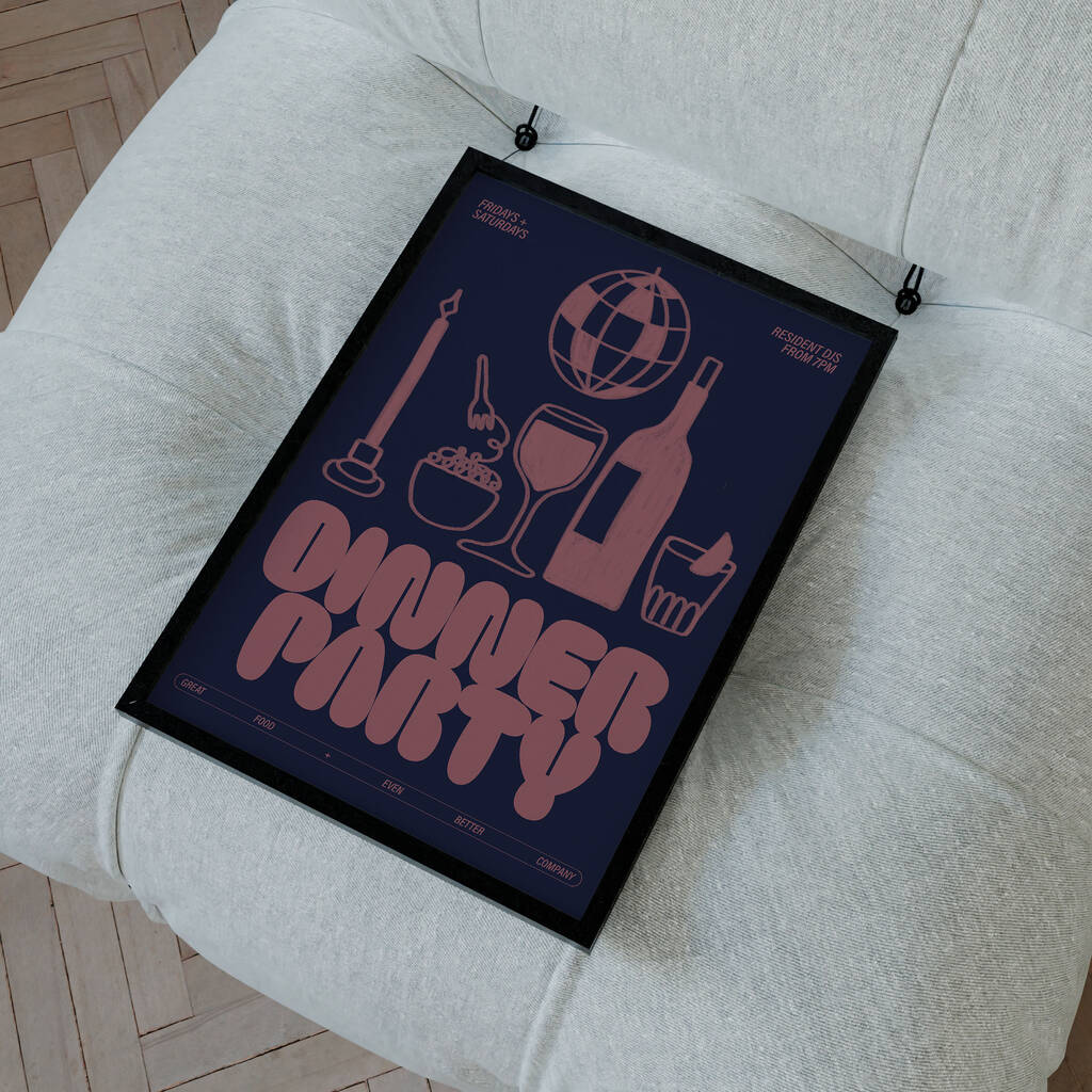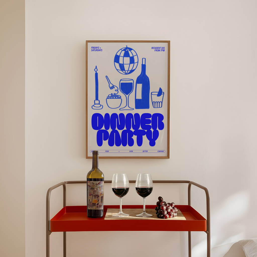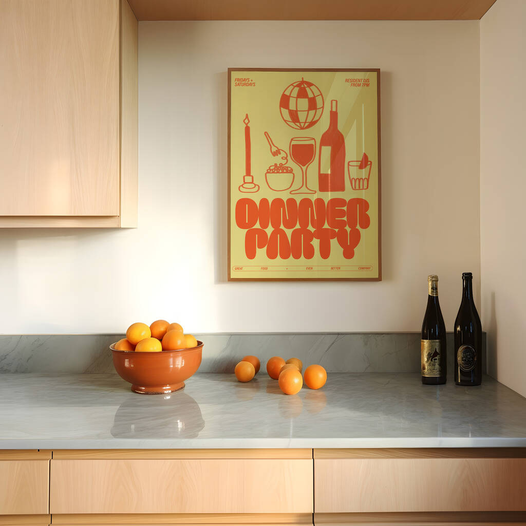 Dinner Party Print | Music Poster | Home Decor | Food | Illustration | Record | Bar | Trendy | Retro | Kitchen Dining Room | Mid Century