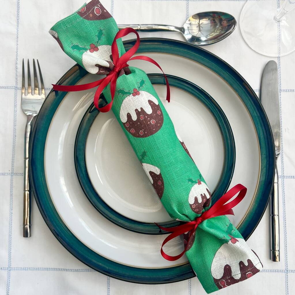 Each year somewhere around 40 million Christmas crackers are thrown in the bin. Yes, FORTY MILLION as well as all the one use paper napkins. So, join the napkin cracker revolution and make your Christmas more sustainable this year with our re-usable, 100% linen crackers featuring Lottie’s hand drawn delicate 'Christmas Pudding' design. Once opened our crackers can also double up as stunning napkins for your Christmas dinner table. If dirty just pop them in the washing machine ready for next time ... handy huh? Not only are they sustainable but they are a really special addition to your Christmas table-scape that will be sure to wow your guests.