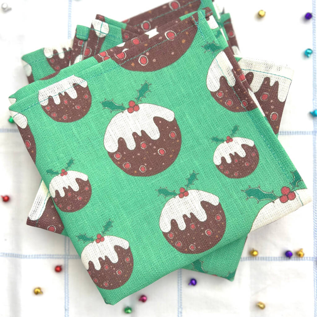 Stunning 100% linen napkins featuring Lottie’s hand drawn 'Christmas Puddings' designs.