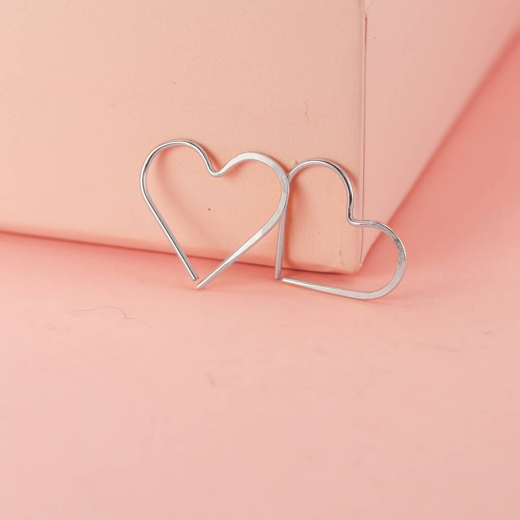 Heart Hoop Earrings In Sterling Silver