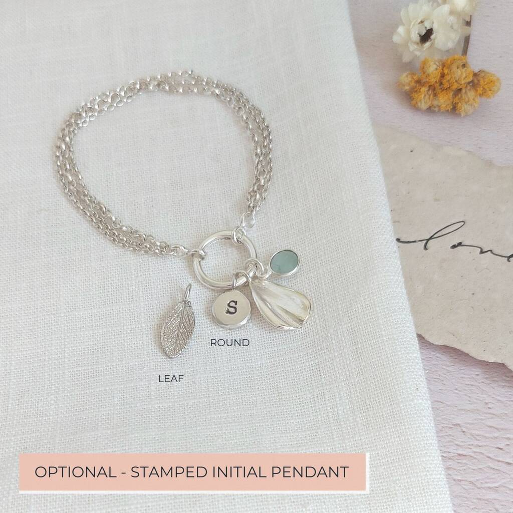 Or personalise with a stamped initial pendant – either a round or textured leaf shape.