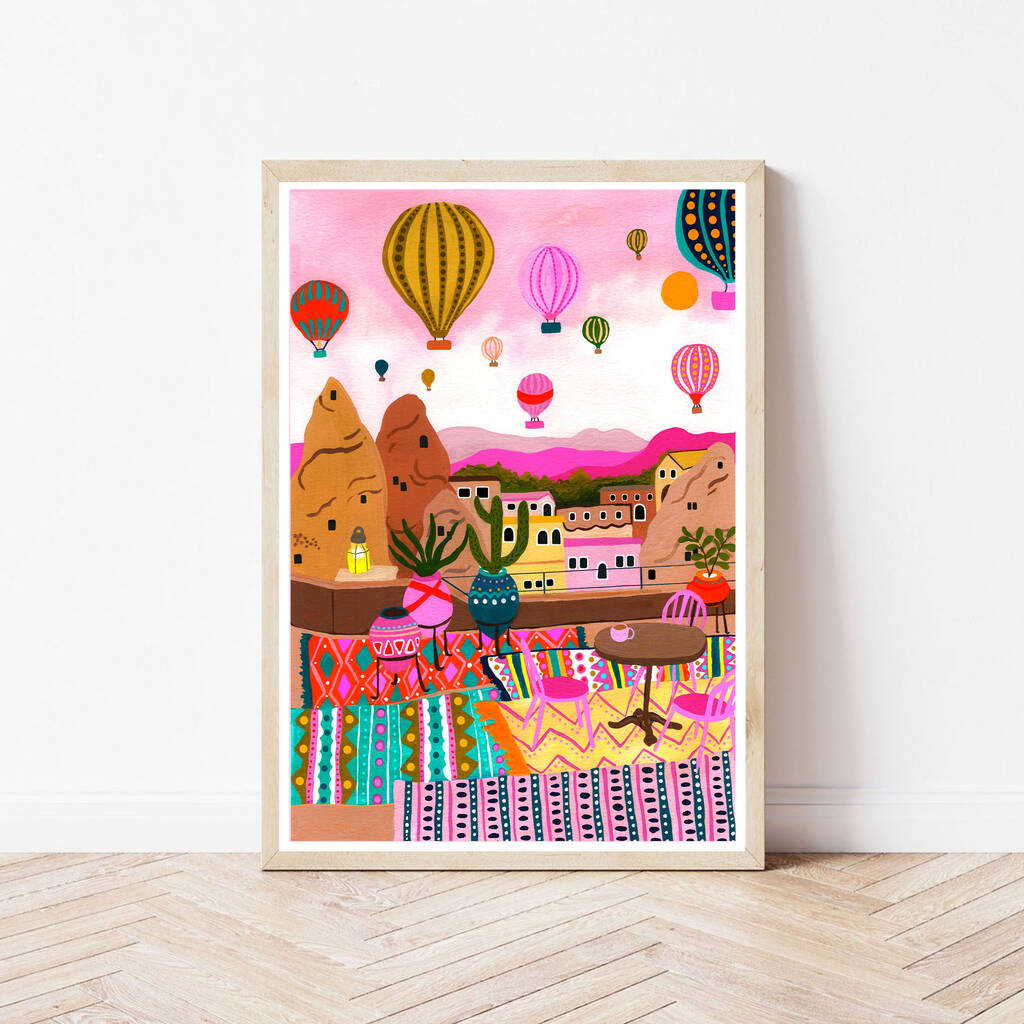 Stunning, colourful wall art print inspired by the hot air balloon festival in turkey.