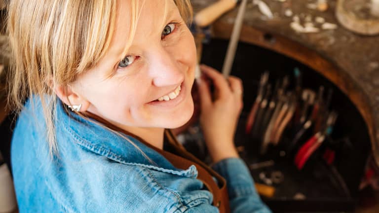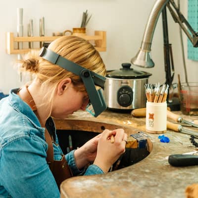 I’m Laura, a traditionally trained jeweller designing and handcrafting Art Deco–inspired jewellery from my workshop in Solihull, in the West Midlands.