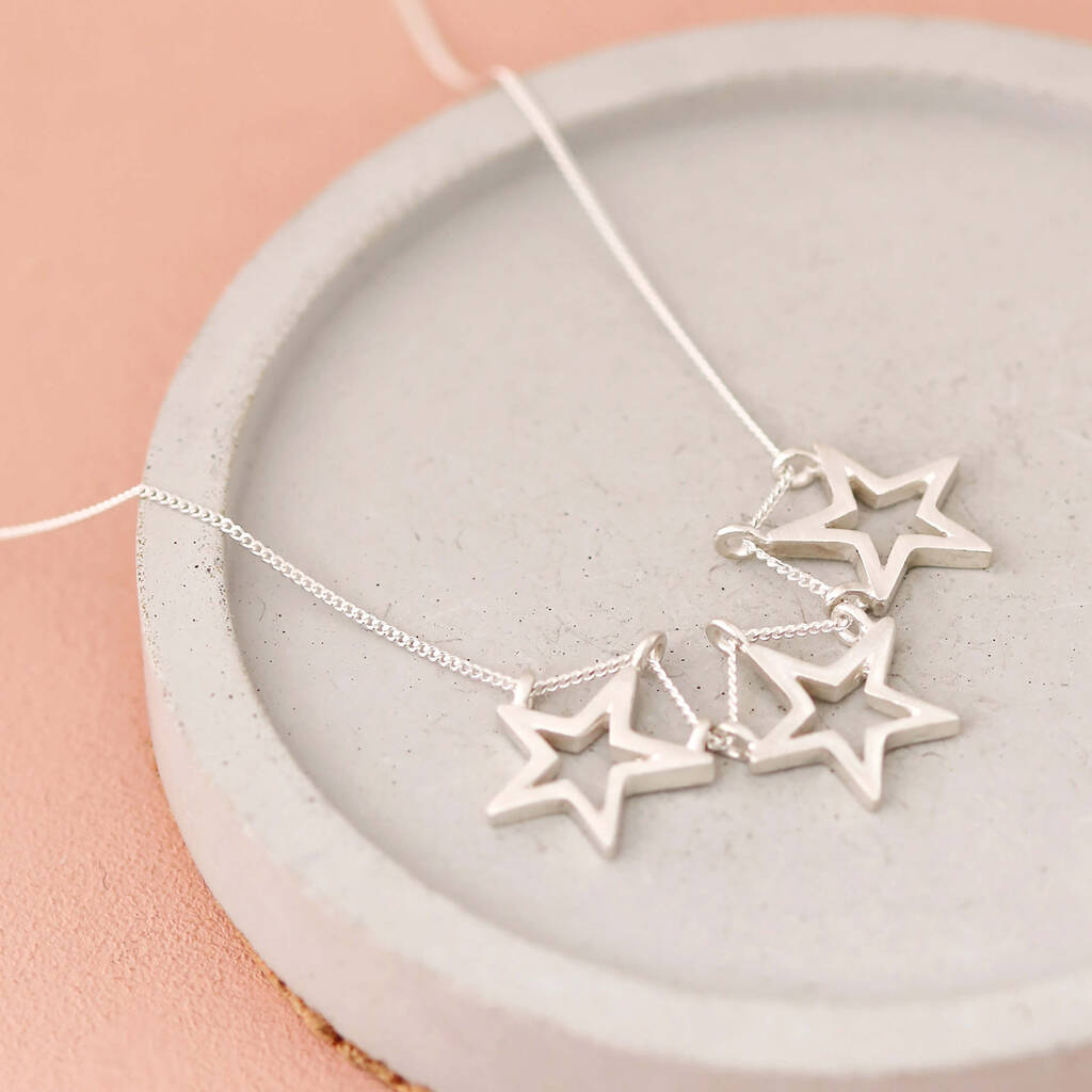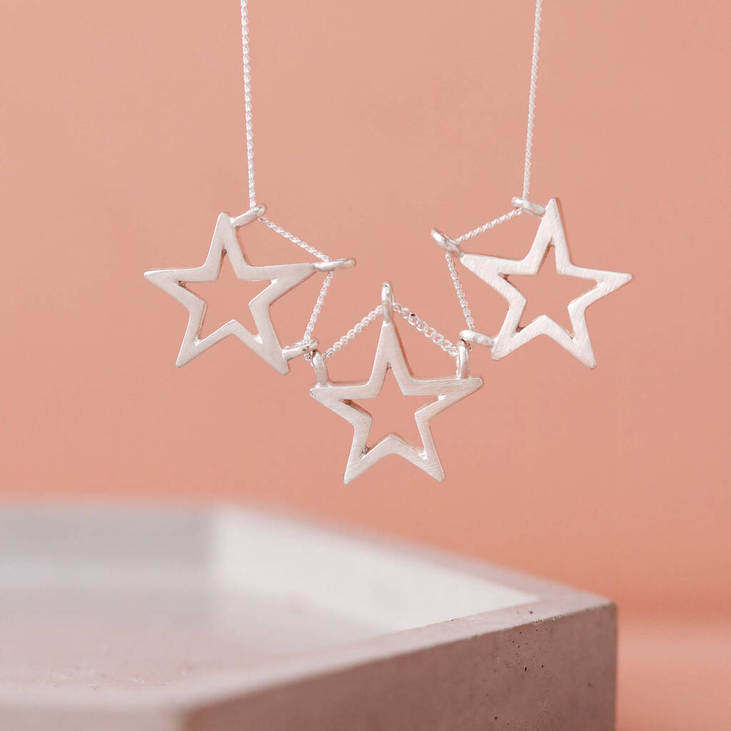 A beautifully handmade sterling silver star necklace featuring three tiny stars, a meaningful symbol of guidance, hope and inspiration for life’s brightest moments.Shine bright with this handmade triple star necklace, crafted from solid sterling silver with a soft matte finish. Each star symbolises guidance, hope, and inspiration, a timeless reminder to follow your dreams and trust your journey. Elegant and understated, this star necklace is perfect for everyday wear or as a thoughtful gift for graduations, new beginnings, or good luck occasions. Designed to be both modern and meaningful, it’s a piece you’ll treasure for years to come.