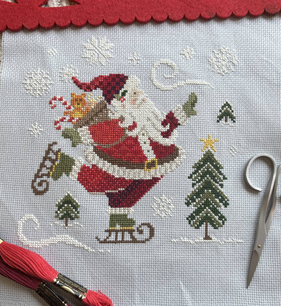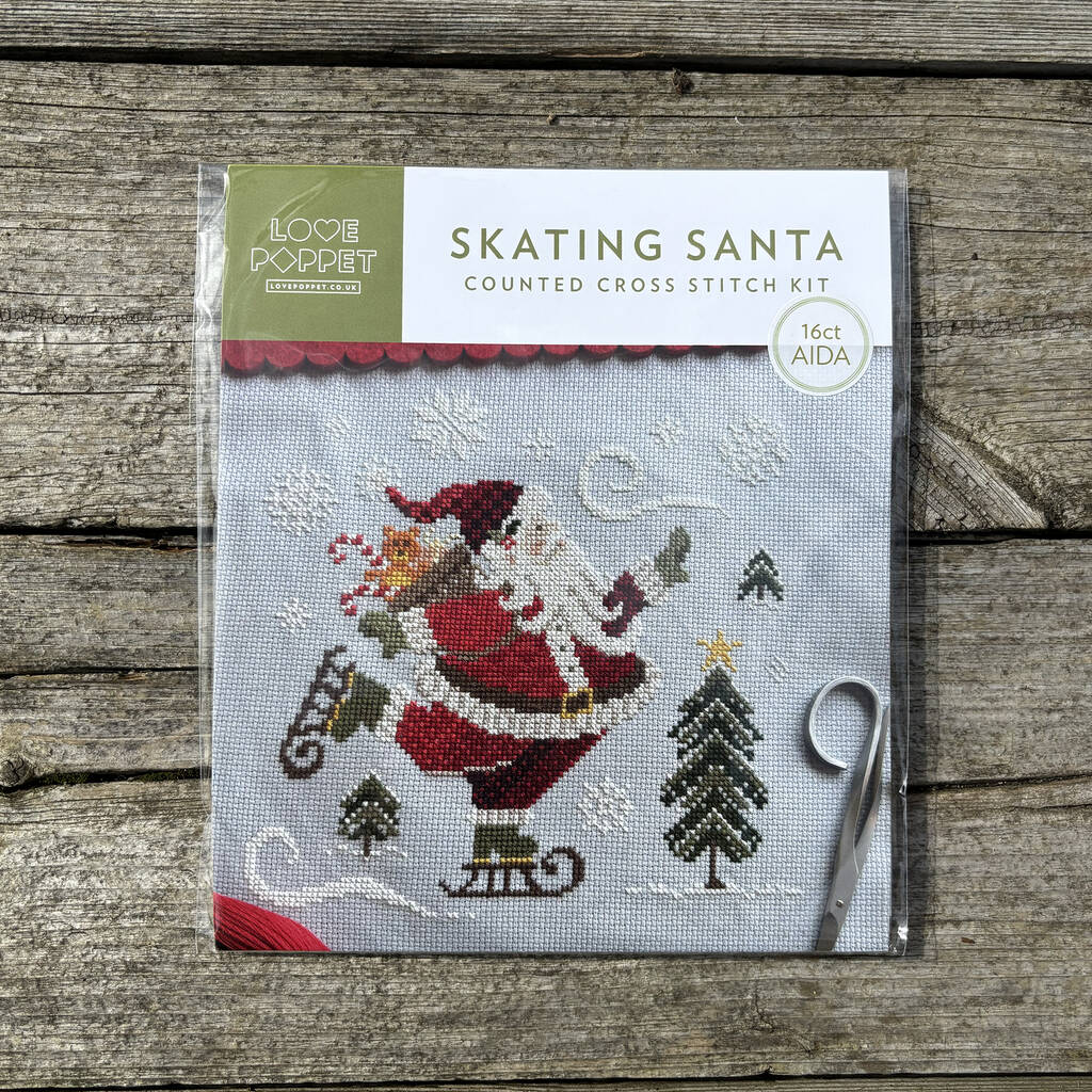 Skating Santa Modern Cross Stitch Kit