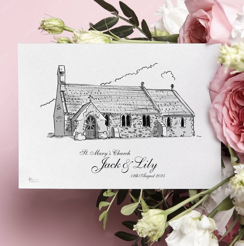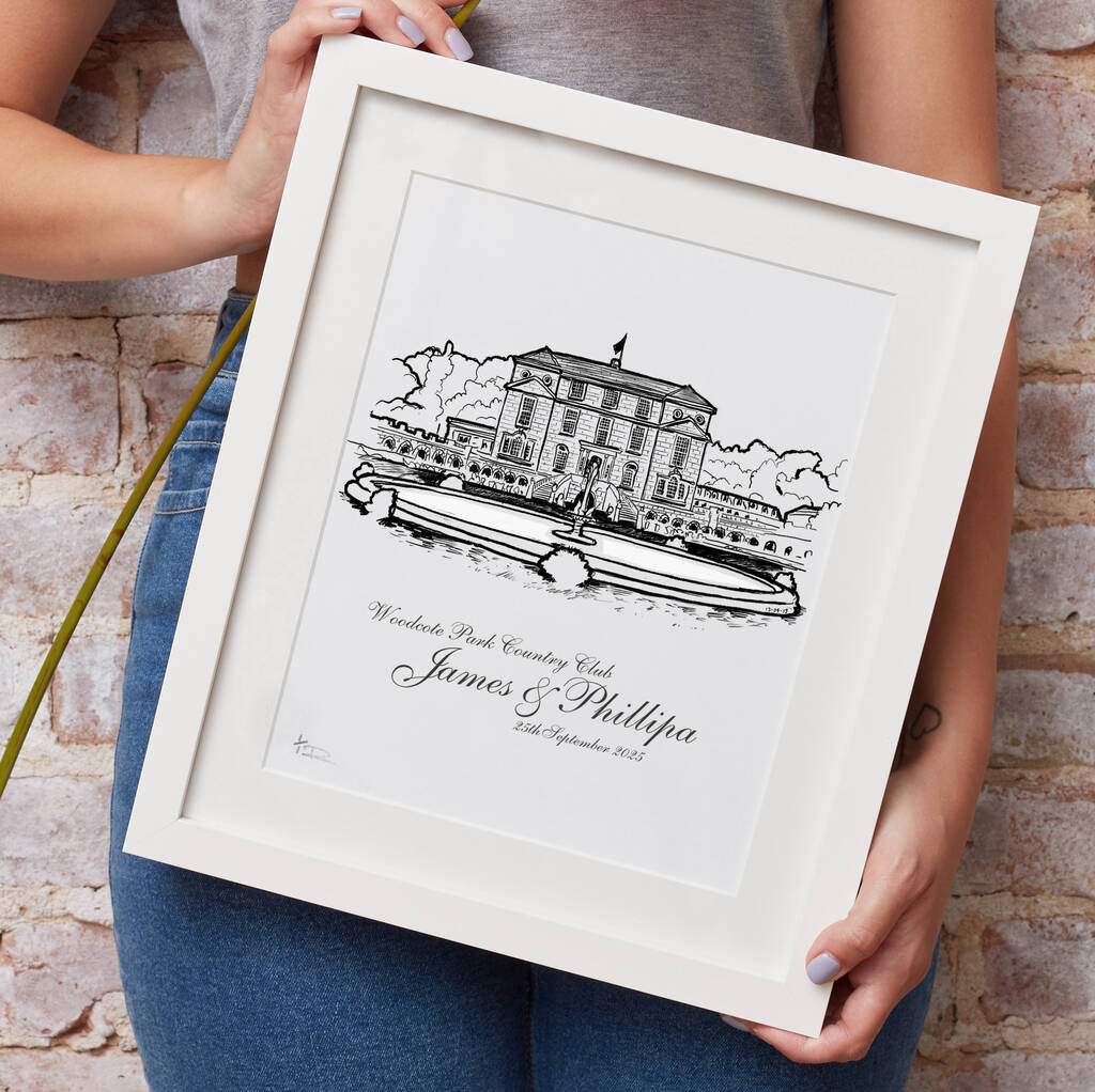 Personalised And Framed Hand Drawn Wedding Venue Print
