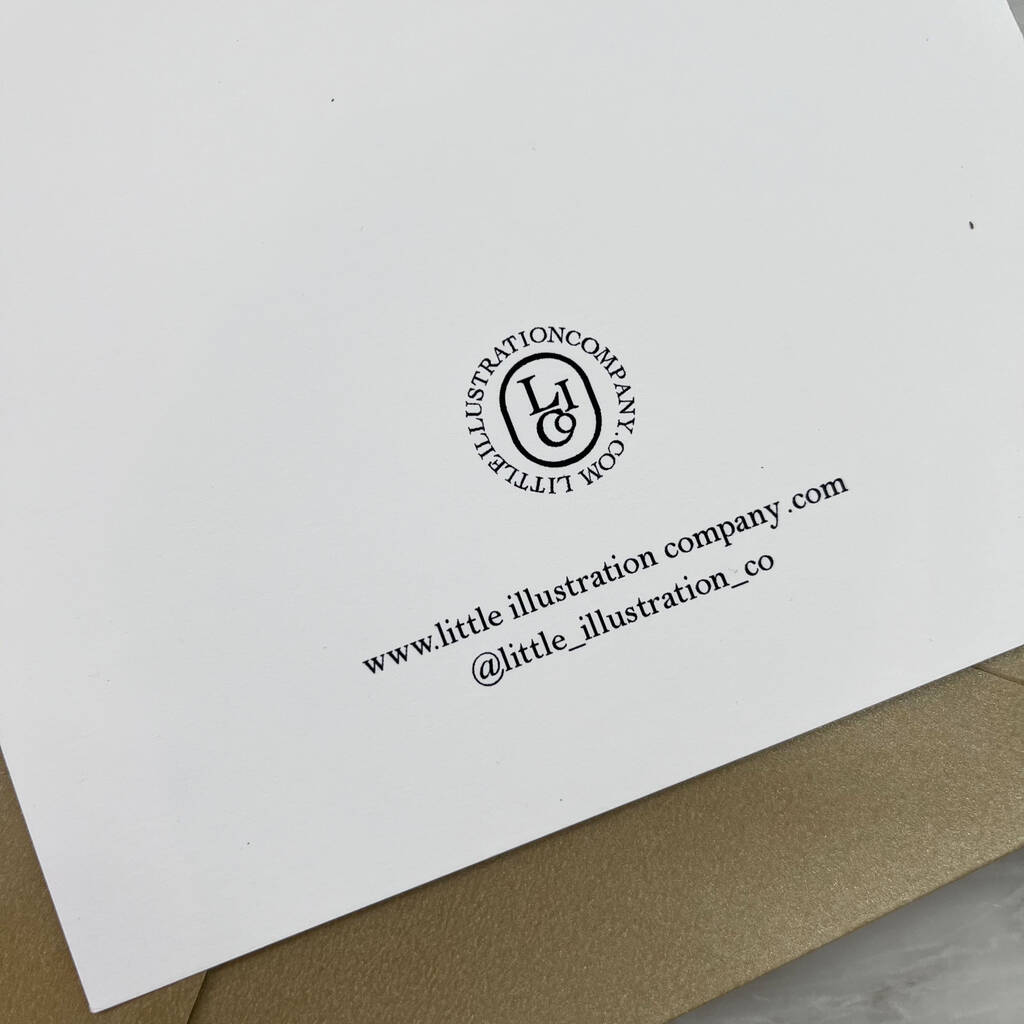 Printed on textured matt archival paper on a Glicee printer so that the inks do not fade so that your card will stay perfect forever. Includes a beautiful pearlised gold envelope.