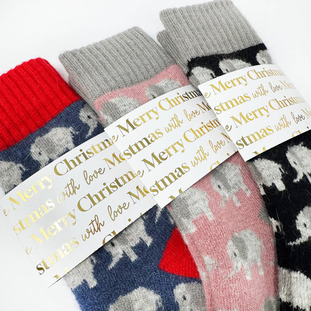 Christmas Cosy Elephant Socks With Personalised Label, Warm Socks