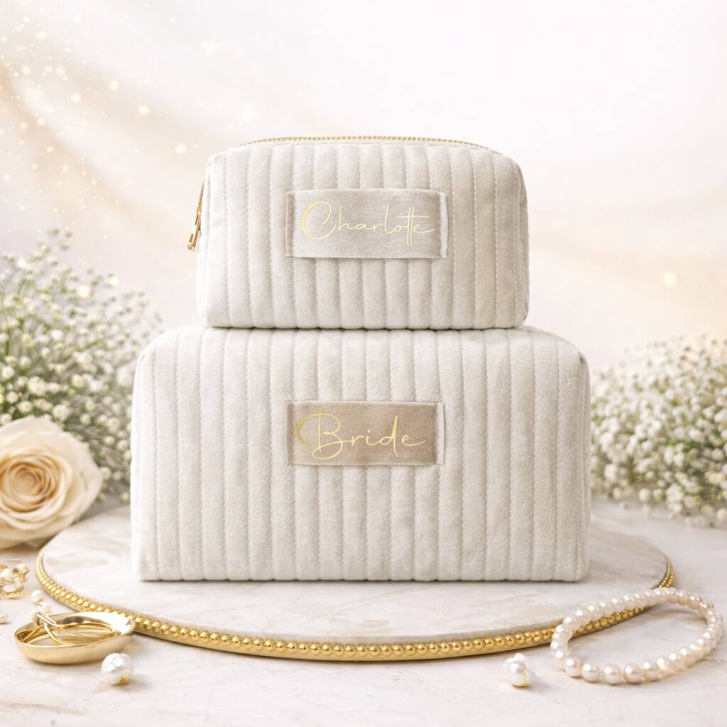Personalised Ribbed Velvet Feel Box Make Up Bag, Gift For Her Bride Gift