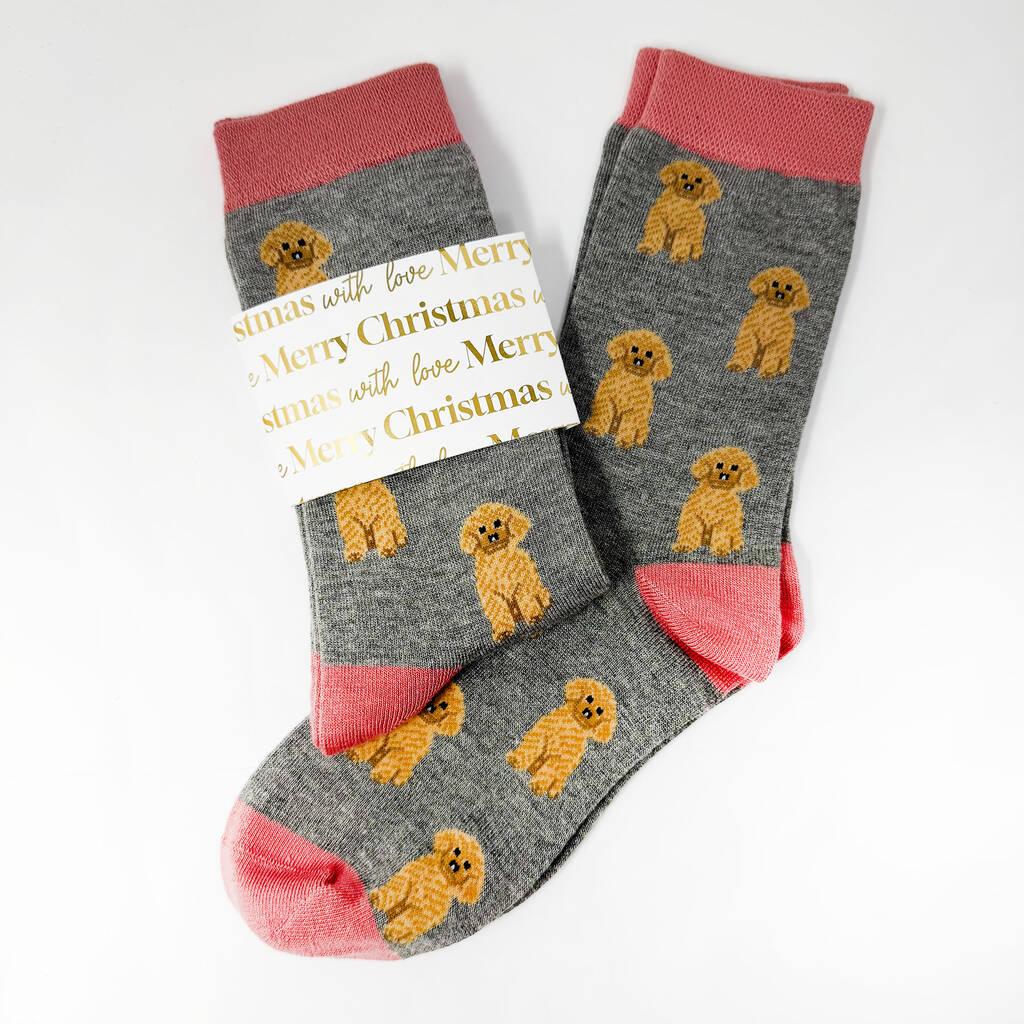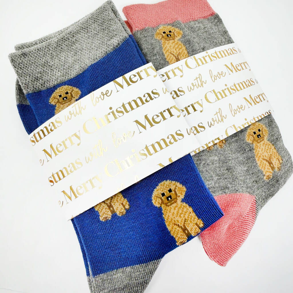 Personalised Christmas Cavapoo Bamboo Socks With Gold Foil Label