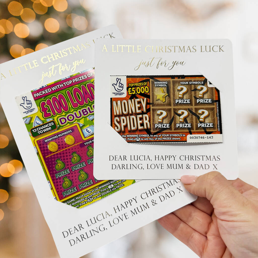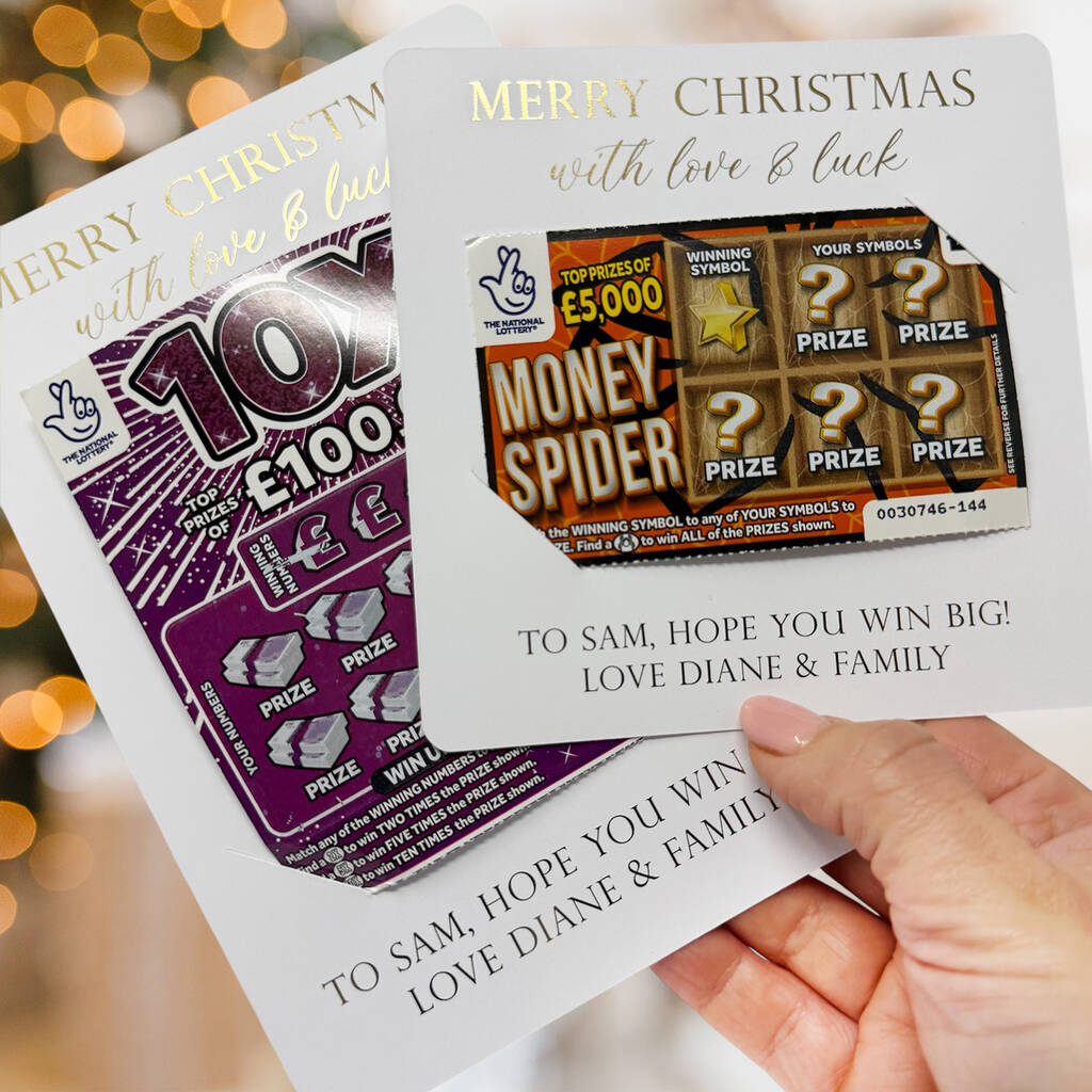 Personalised Christmas Scratch Card Holders, Xmas Lotto Holders Small And Large