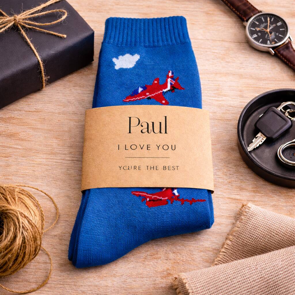 Planes Themed Mens Socks With Personalised Label Sleeve
