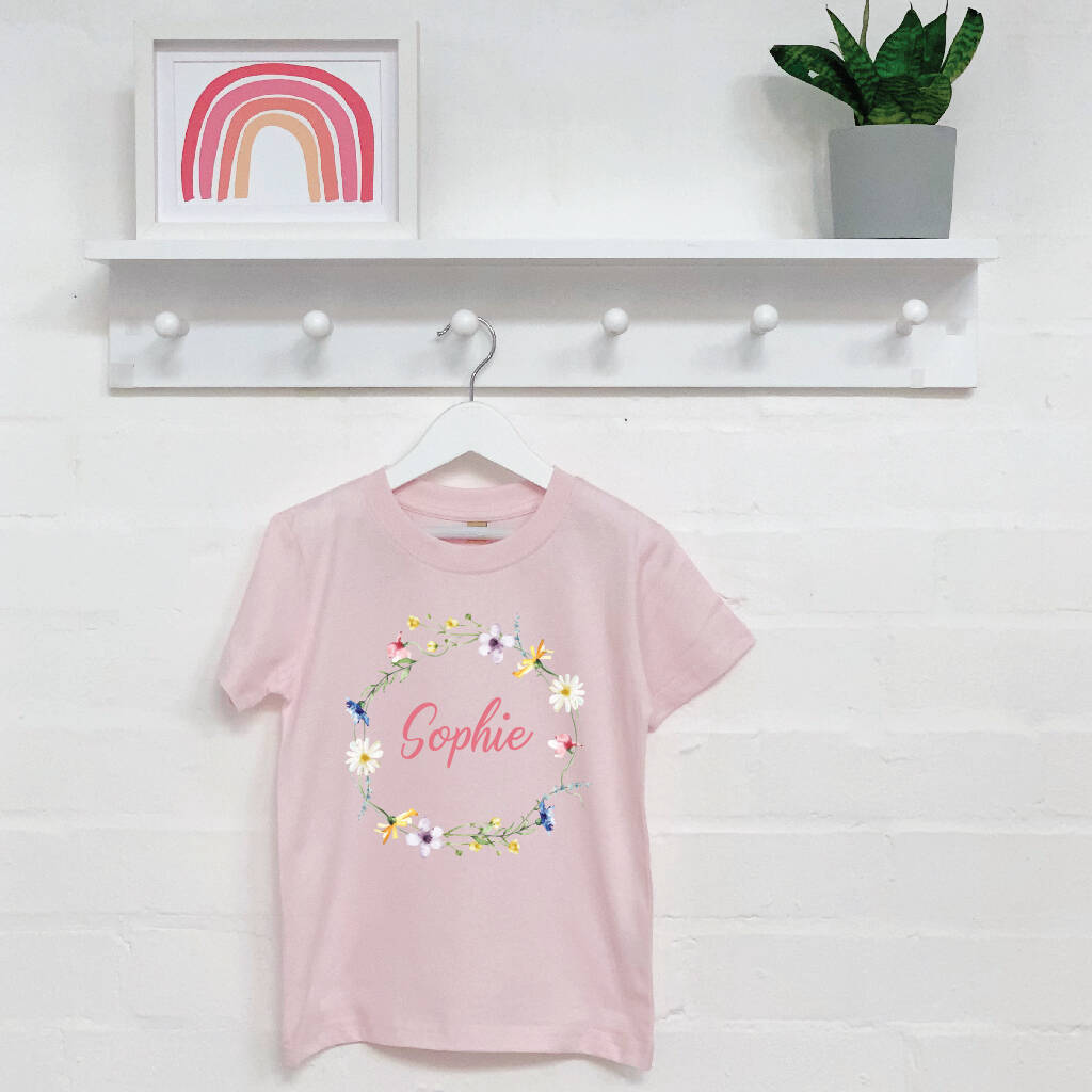 Easter Floral Wreath Personalised Kids T Shirt